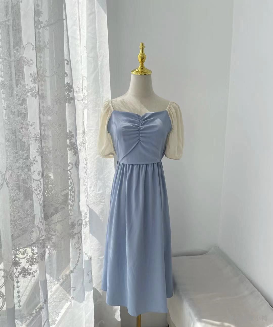 夏季莫兰迪色法式珍珠串褶皱垂感显瘦纱料设计小众气质中长连衣裙热门设计联盟服务商